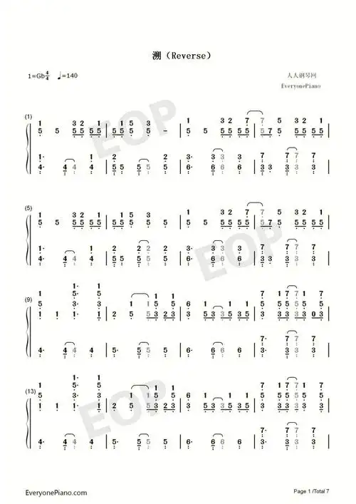 溯 reverse钢琴数字简谱-虫虫乐谱