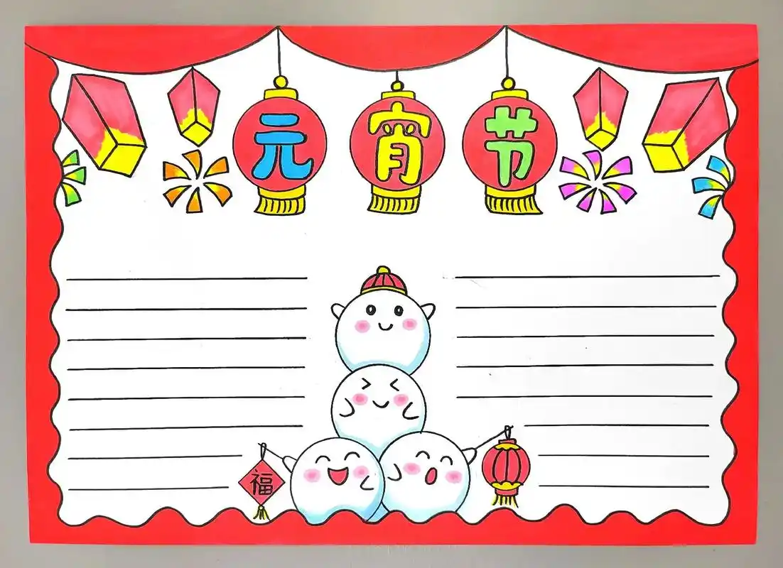 超简单的元宵节手抄报模板来咯,还有可打印线稿哦,快收藏起来拿 - 抖