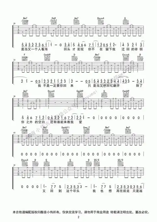 失落沙洲(吉他谱)_徐佳莹_g调原版六线谱_高清图片谱