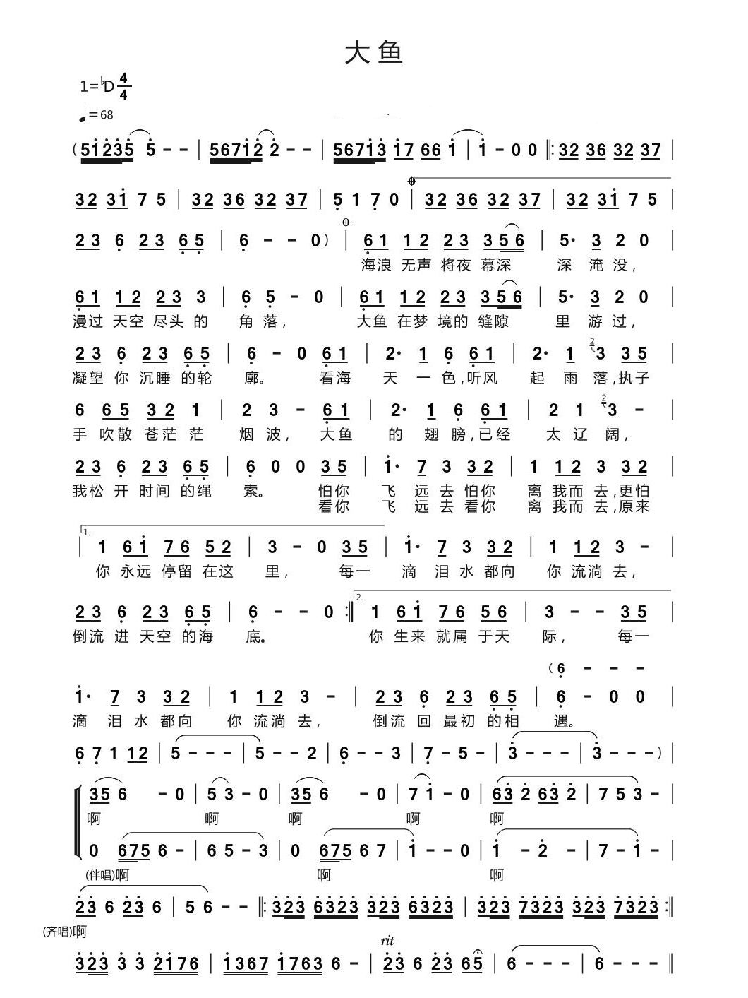 大鱼简谱