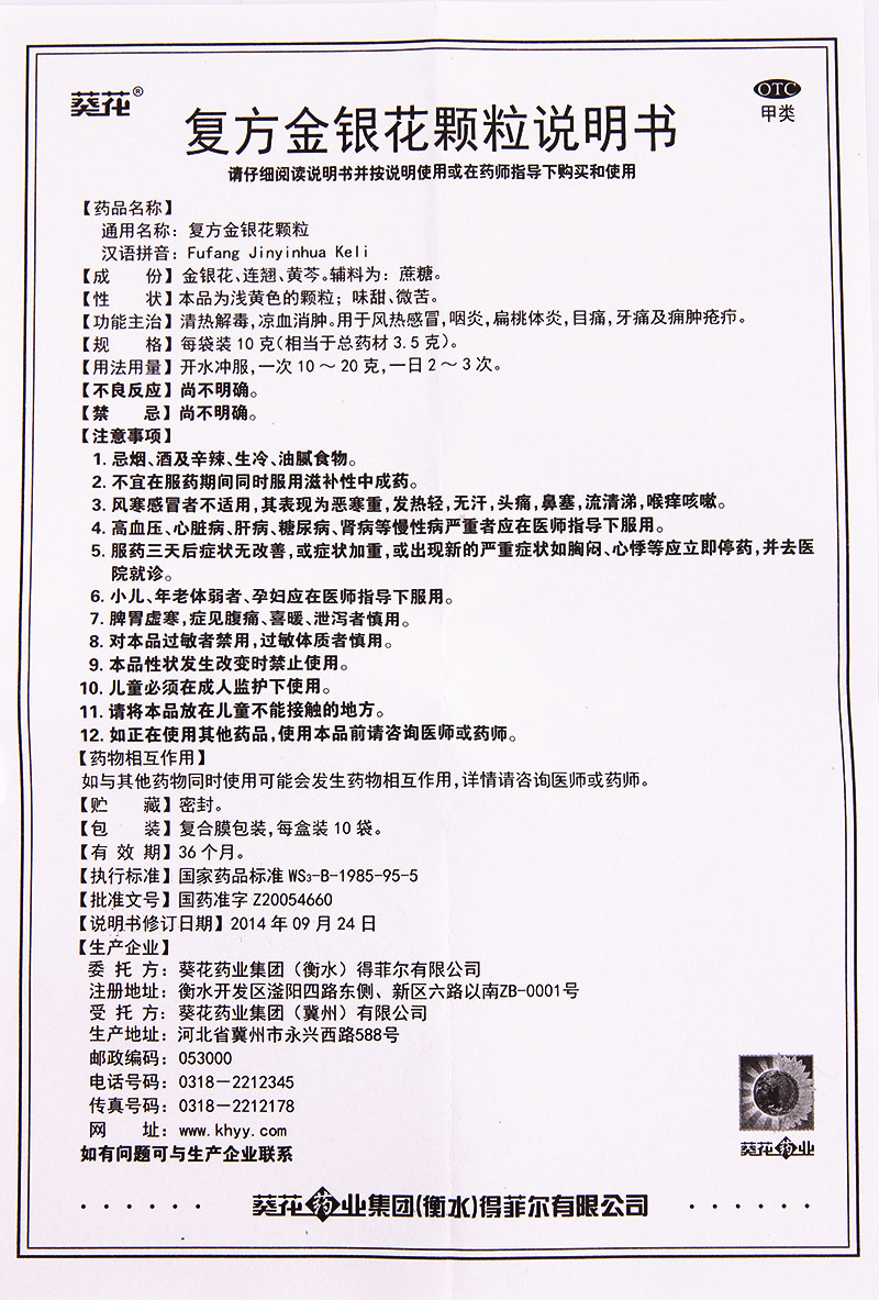 得菲尔 复方金银花颗粒 清热解毒风热感冒咽炎扁桃体炎眼痛牙痛药