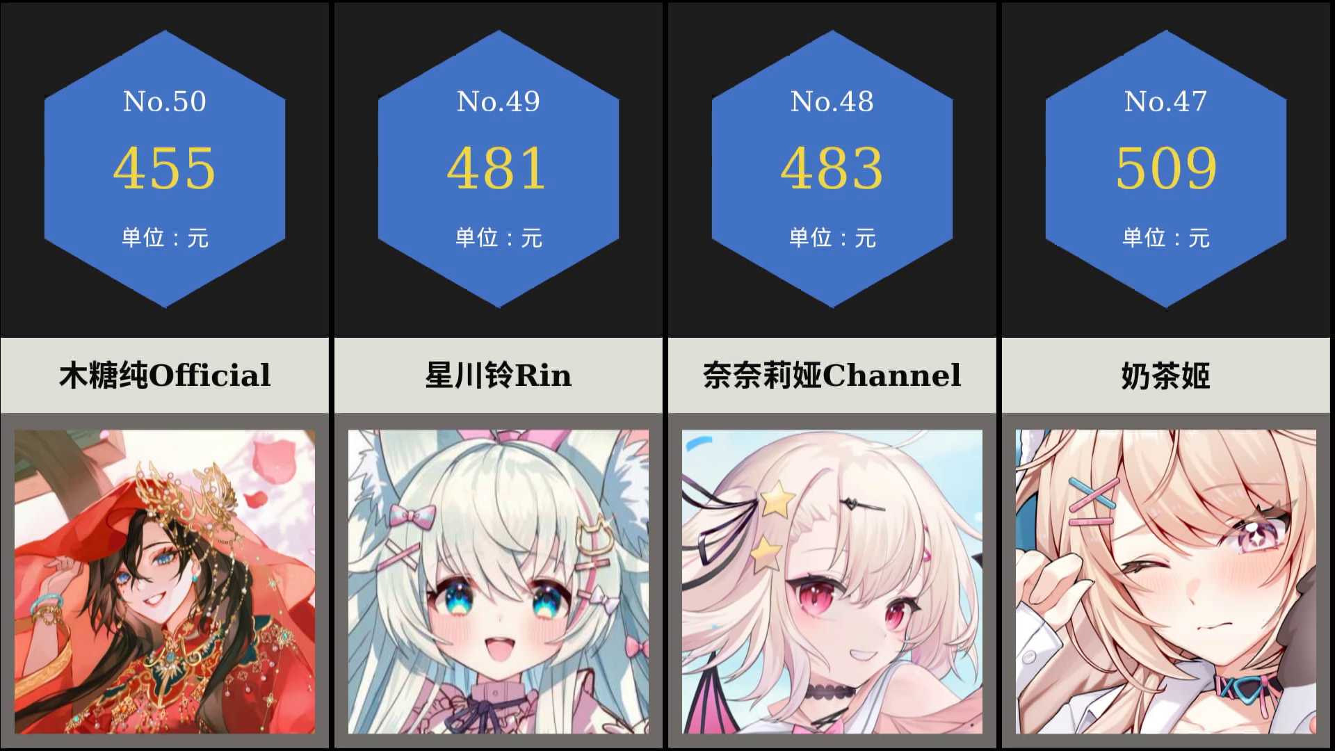 虚拟主播营收日报【2023-10-10】 minicatty,咲间妮娜official,泰蕾莎
