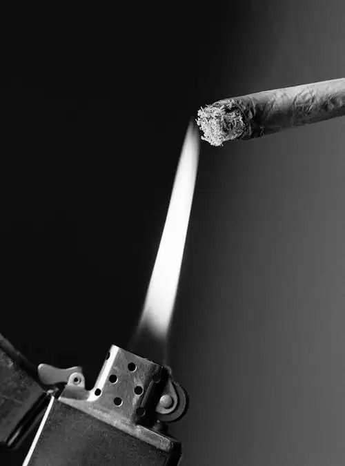 白天,静物,香烟,火,灰色背景,朦胧,模糊,火苗,火焰,一个,机械,打火机