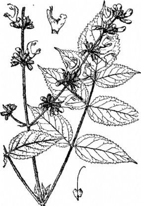 插画 集丹参植物也称为圣人花园.花和叶子被隔绝在白色背景.