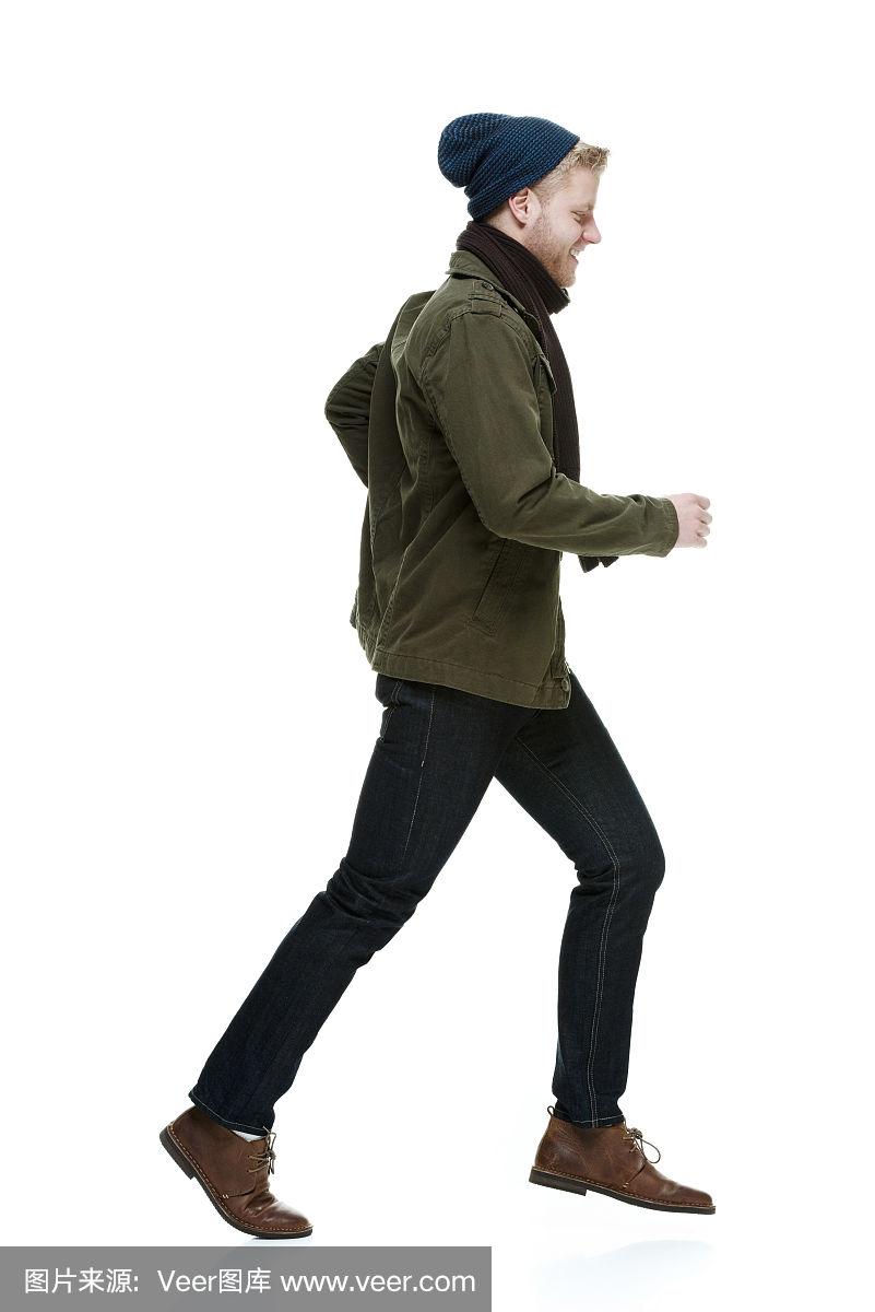 东方人,一个人,跑,竖图,室内,白天,白色背景,侧面,运动服,运动鞋,锻炼