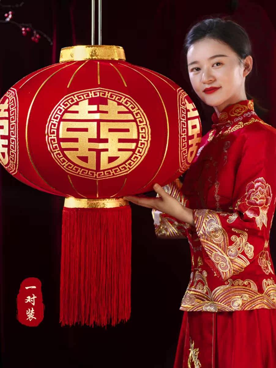 喜事灯笼结婚用的喜别墅大门口喜字婚庆用品挂饰绒布大红院子婚庆