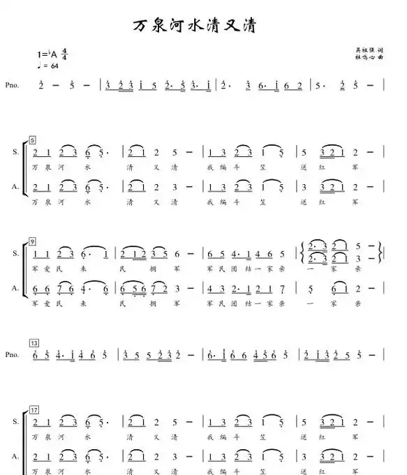 国家大剧院合唱团 万泉河水清又清 编配改编合唱简谱钢琴伴奏五 - 抖
