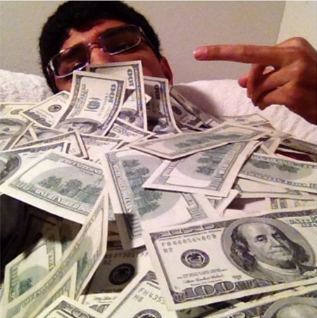 美国一名印度裔富二代前不久在网上炫富(资料图)
