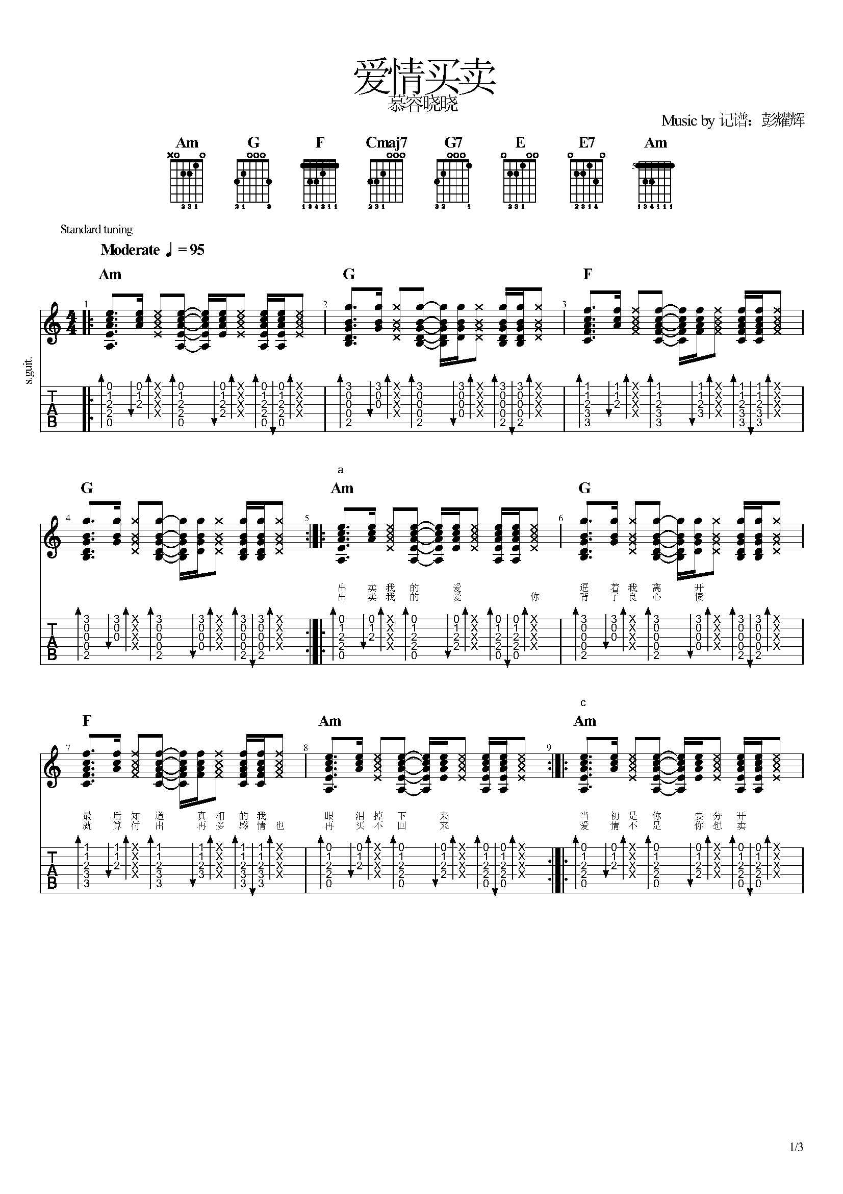 《爱情买卖》,慕容晓晓(六线谱 吉他谱吉他谱 第1页