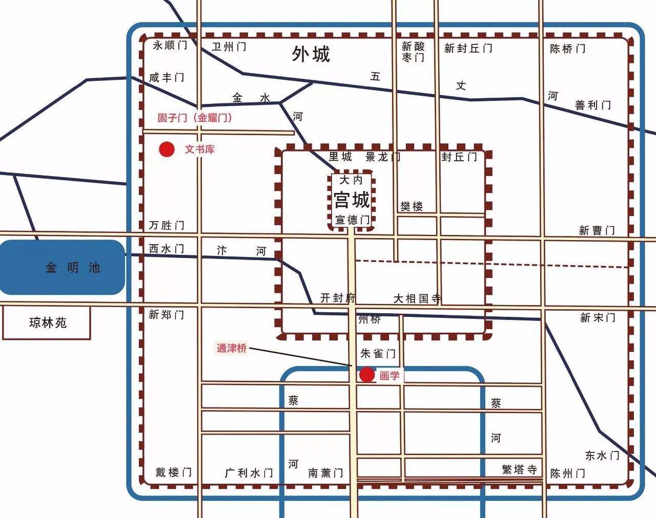 北宋都城东京平面图:北宋都城东京(今河南开封),古时又称汴梁,汴京