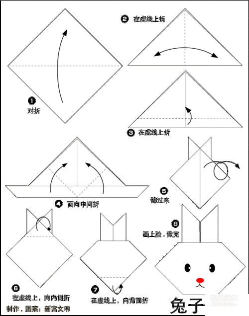 兔子的折纸步骤图解 怎样折兔子