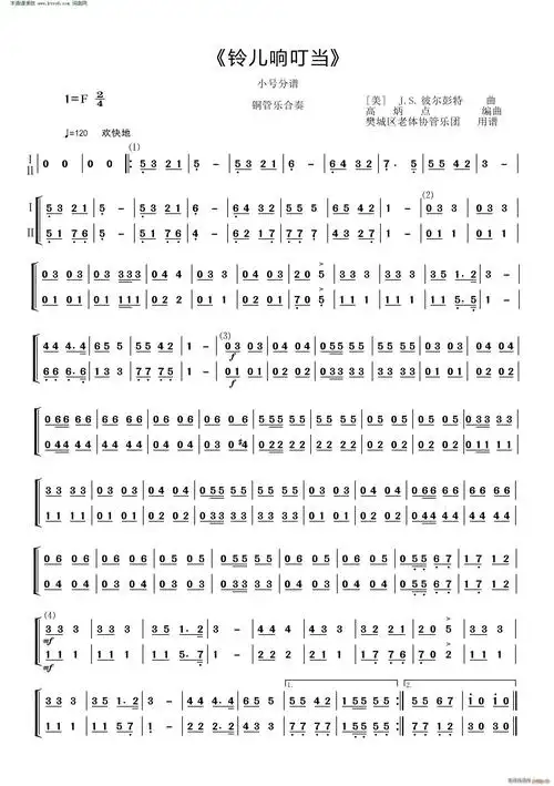 铃儿响叮当(小号分谱 铜管乐合奏) 歌谱简谱网