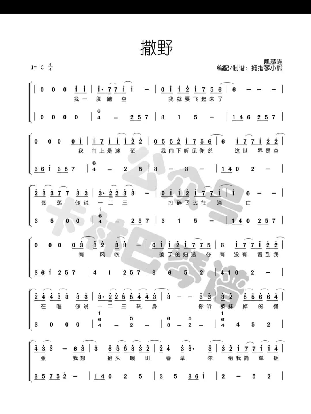 卡林巴拇指琴《撒野》简谱