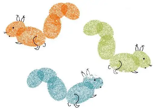 在卡纸上印上手指印,然后借助手指印的轮廓来想象,它像什么呢?