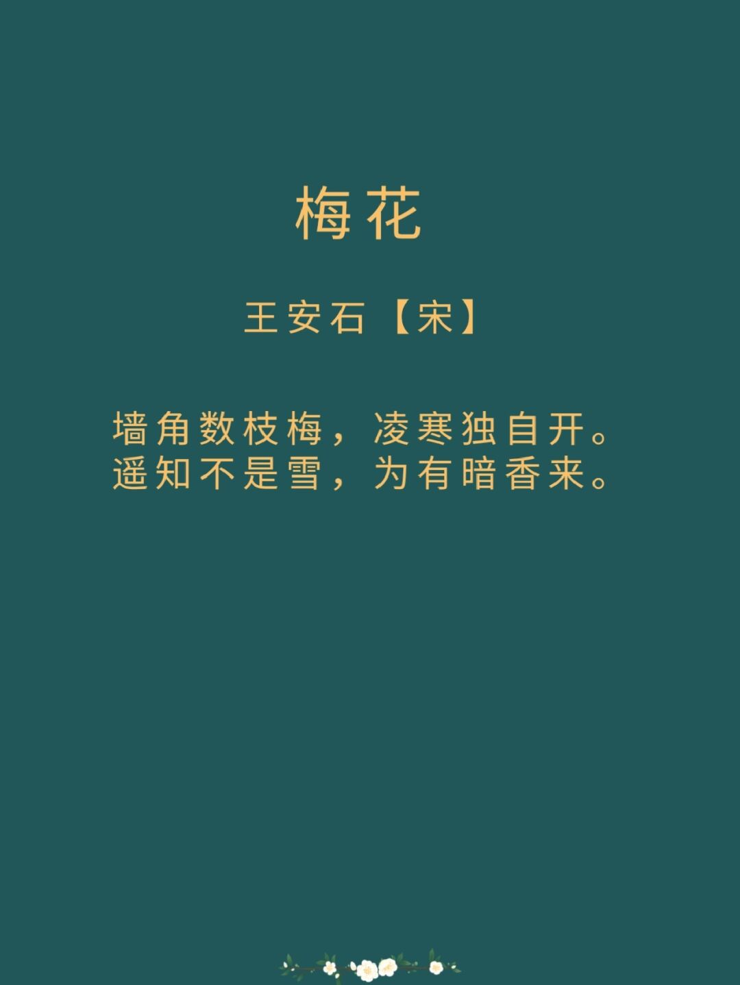 每日诗词|《梅花》王安石 译文: 墙角有几枝梅花,正冒着严寒独自盛开.