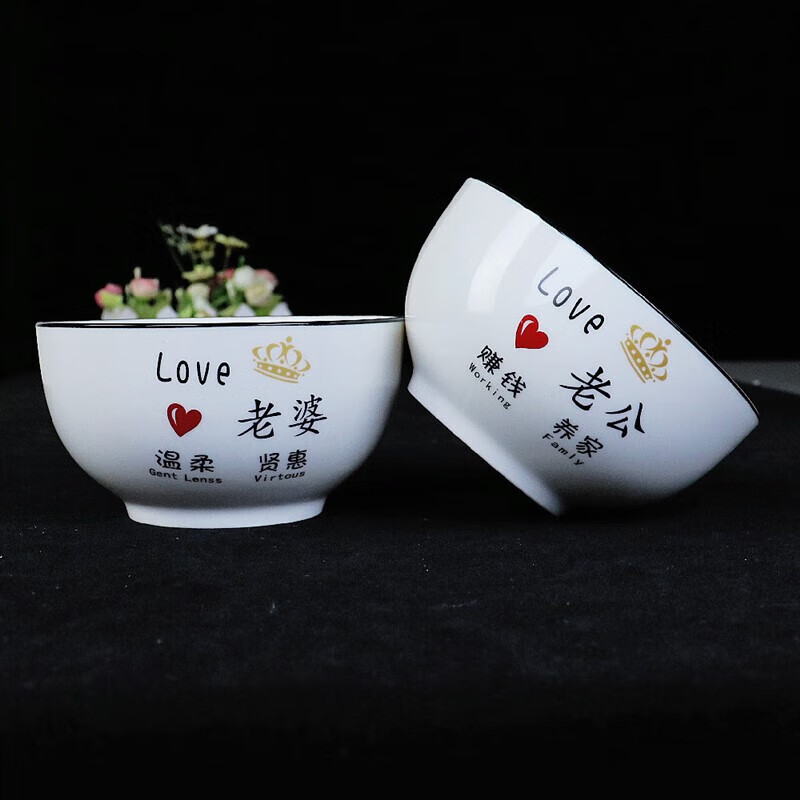 一对情侣款家用老公老婆吃饭碗陶瓷创意可爱好看的 l21-爱老公/爱老婆