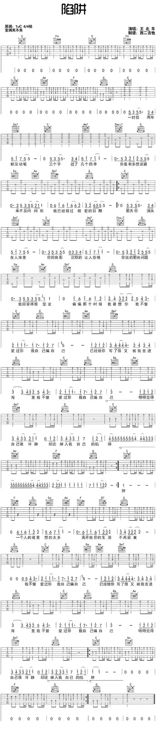王北车 陷阱 吉他谱 c调吉他谱c调六线吉他谱-虫虫吉他谱免费下载