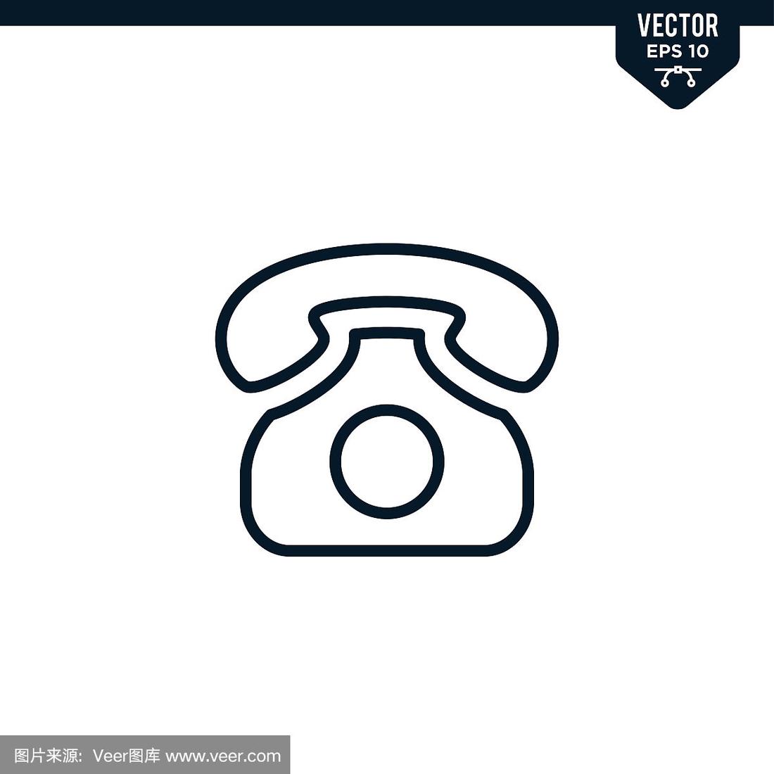 插画 电话矢量图标中的线条样式.旧的老式电话符号图.ai