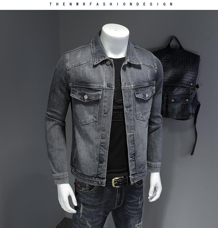 欧洲站春季新款男士翻领夹克外套口袋设计胸口后福字母绣花潮牌