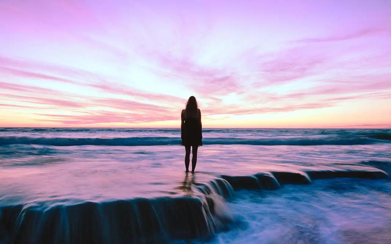 独自一个人在看风景的女生背影