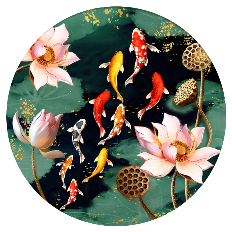 2021新款5d钻石画满客厅圆形九鱼荷花图水钻石绣