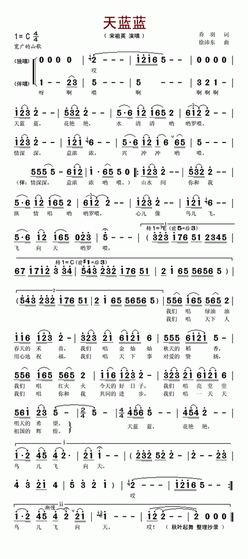 天蓝蓝_歌谱简谱_哆来咪123曲谱网