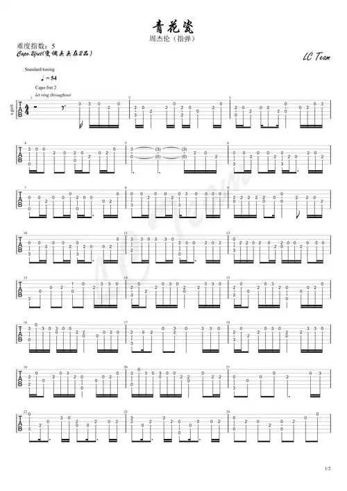 《青花瓷》流行指弹吉他谱 蒋吉他制谱