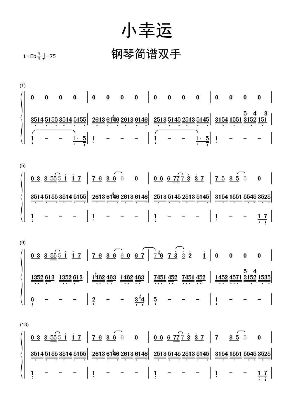 《小幸运》田馥甄 钢琴谱 双手简谱 五线谱 c/d/e/f/g/a/b调