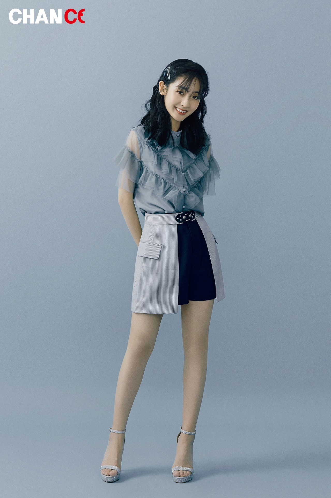 邢菲七夕营业照,白色吊带背心搭配牛仔短裤外搭蓝色格子衬衫,再加上