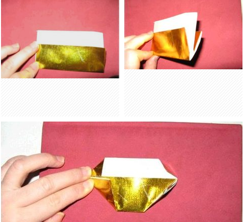银元宝折叠步骤下图是最常用的金元宝折叠方法:金元宝的折法2张正方形