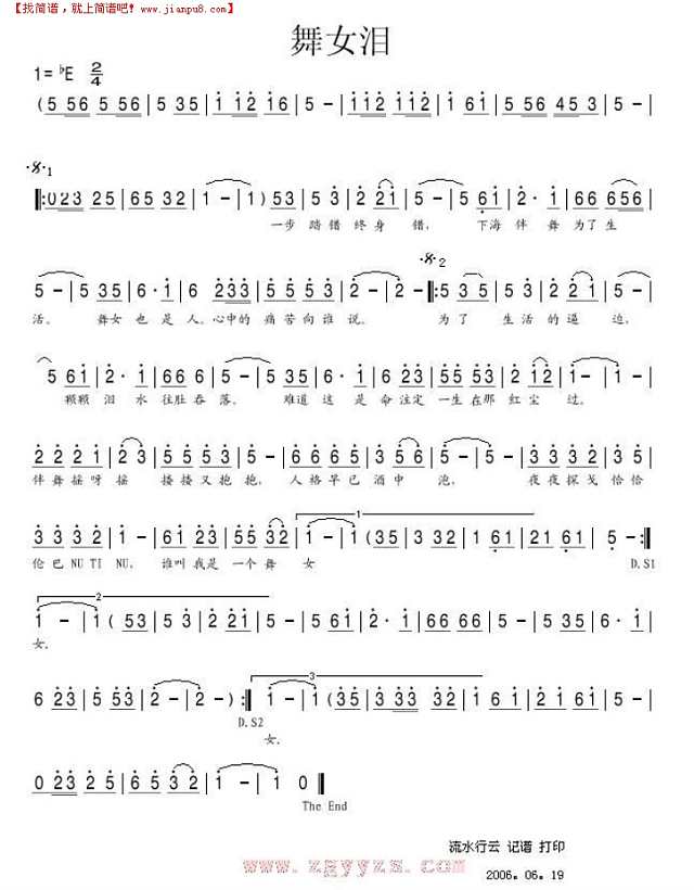 歌谱 > 舞女泪欢迎访问简谱网!欢迎传谱,欢迎发布原创歌曲!