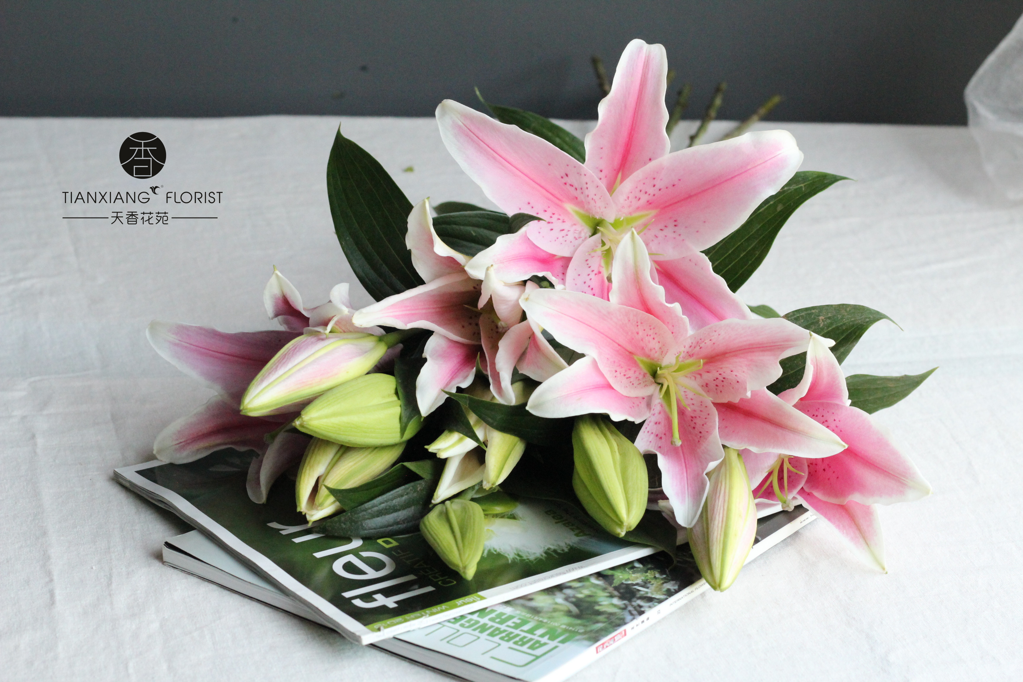 10支双头粉色香水百合鲜花云南直发斗花市索尔新鲜鲜花速递同城