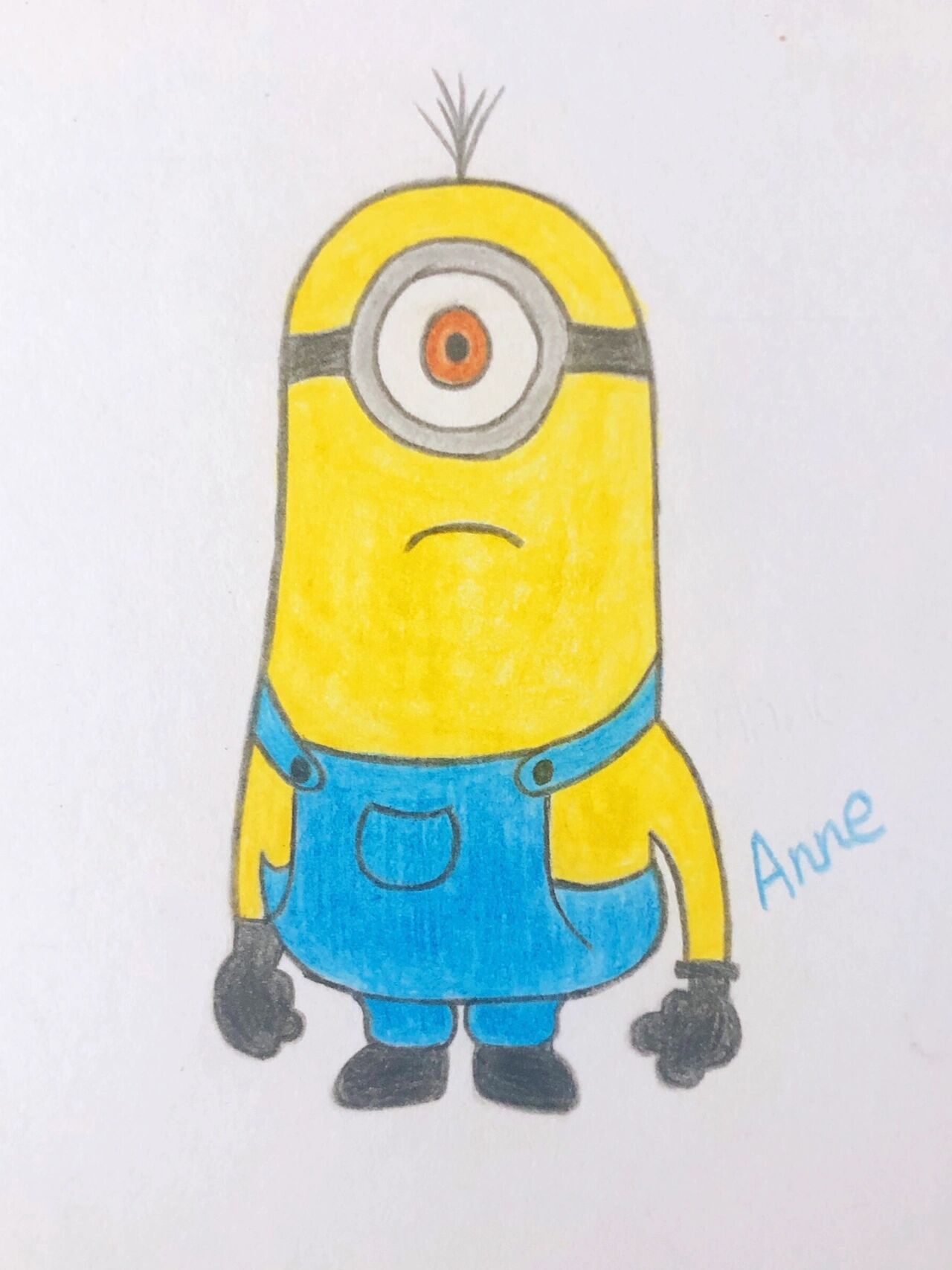 小黄人彩铅简笔画#卡通动漫简单画画过程图 先画铅笔草图,画好彩铅