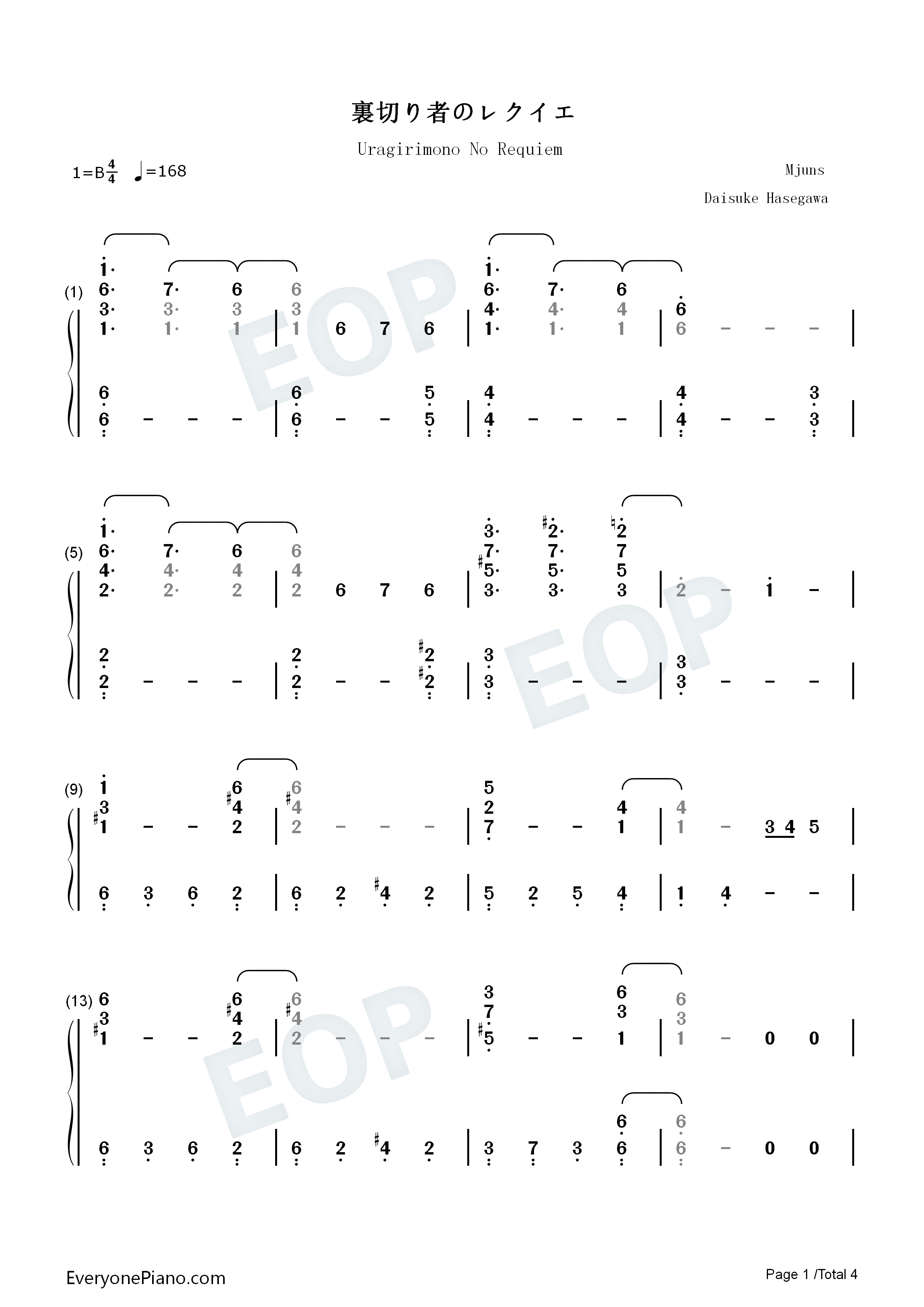 裏切り者のレクイエム-jojo的奇妙冒险黄金之风op2双手简谱预览2