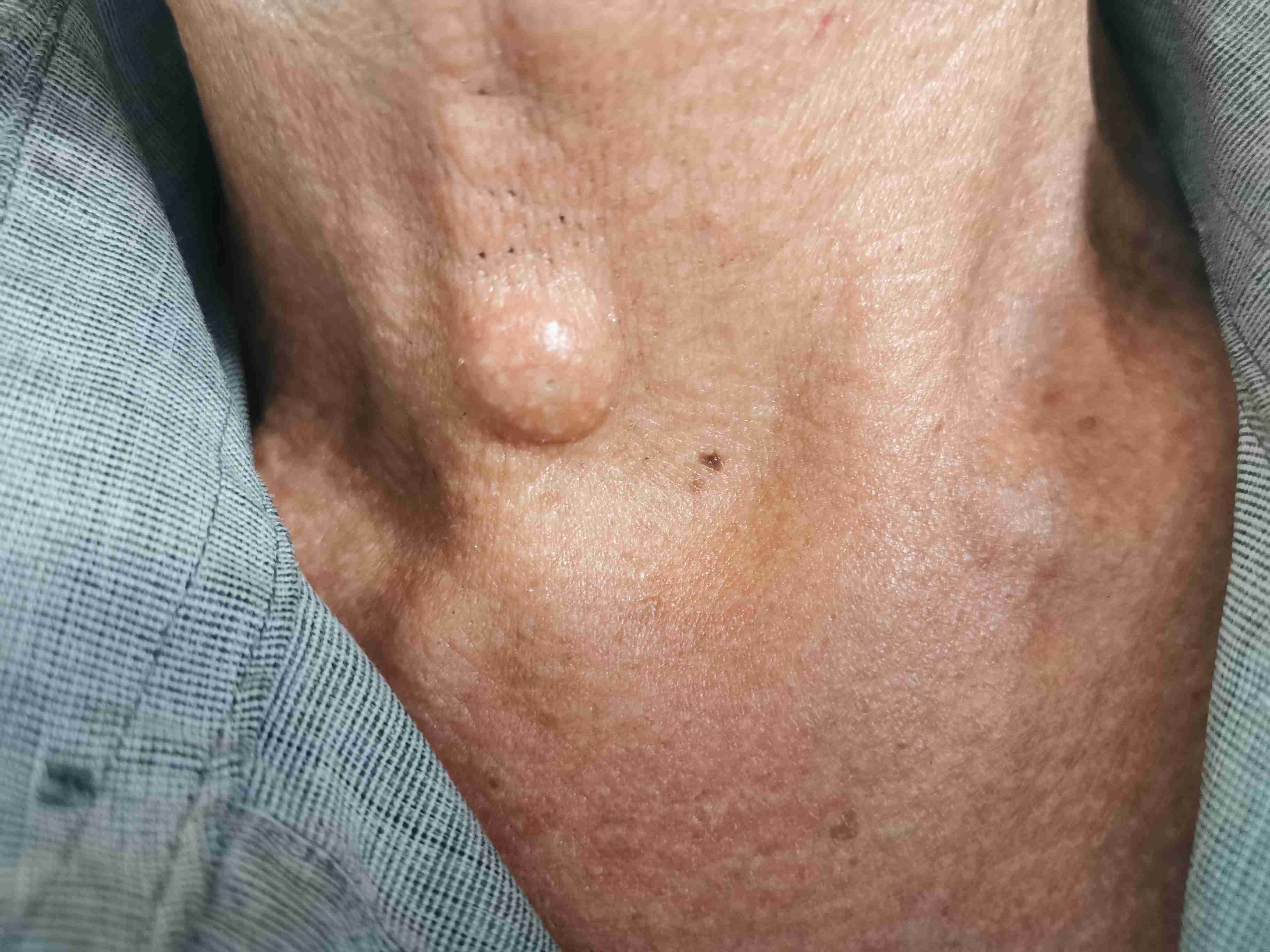 脖子外面长了一个硬硬的疙瘩,但是不痛