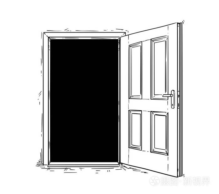 打开自由打开的门矢量.卡通平面夏季景观.前视图.自由概念.