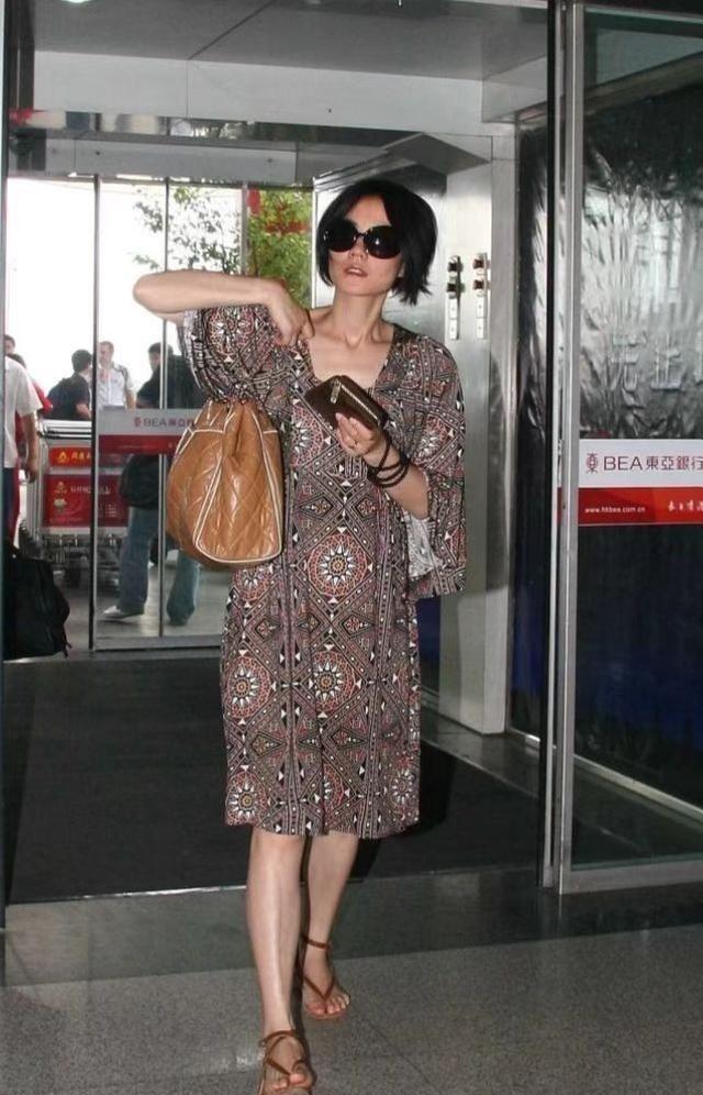 原创王菲穿衣真挺随性印花裙配喇叭袖复古时髦宽松也藏不住身材