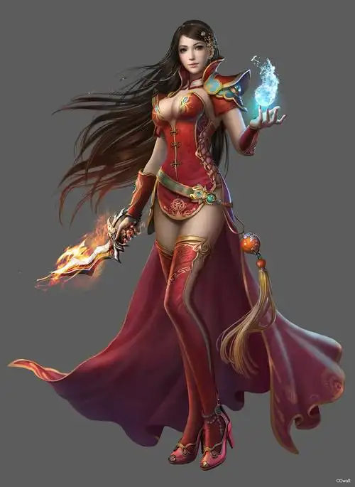 游戏人物性感长发女生素材