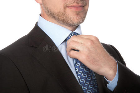 男人打领带,新郎把领带系紧,新郎早上,穿白衬衫的男人照片