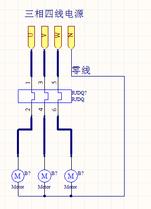 求助!三相四线发电机给三路单相电路供电电路的接法
