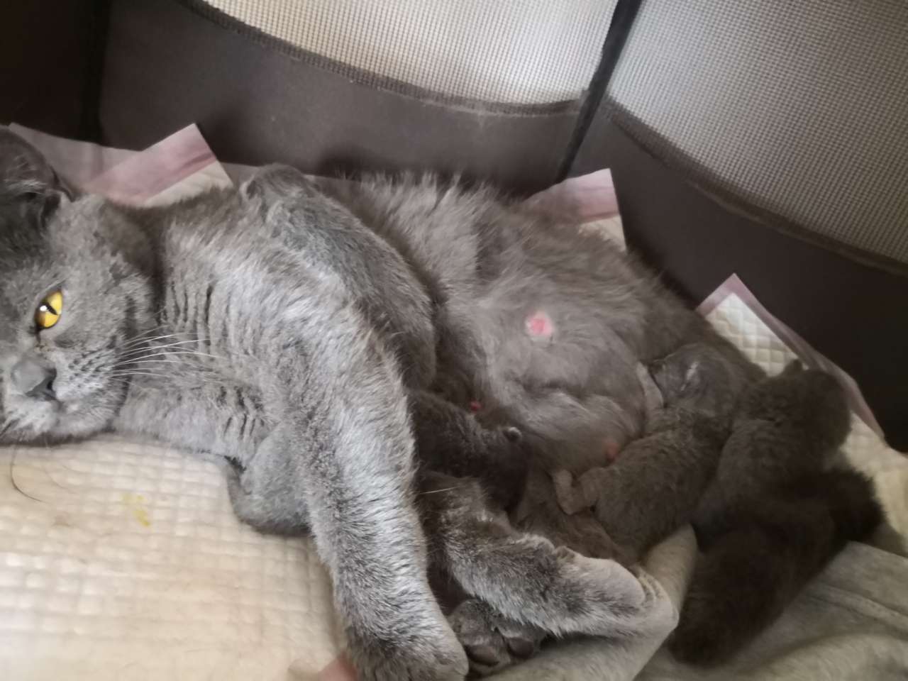 今天家里的蓝猫刚生崽了,不知道怎么看性别