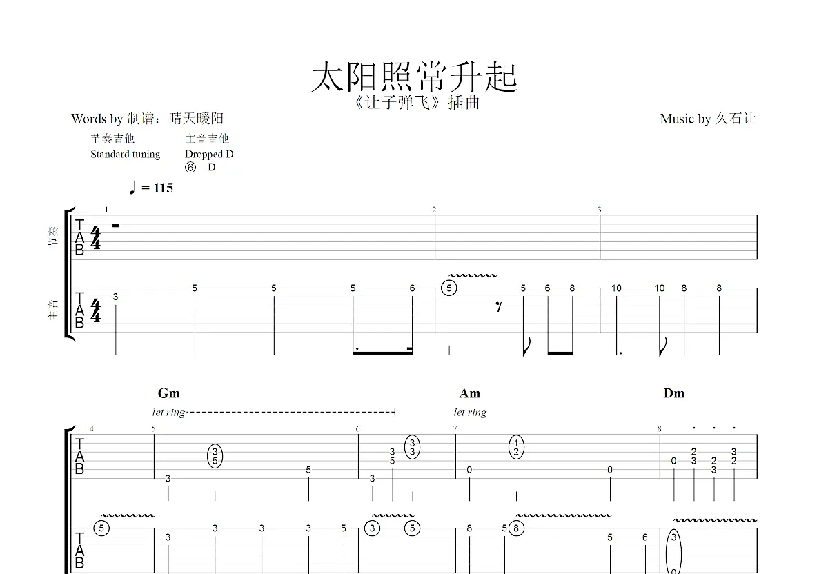 【吉他独奏】太阳照常升起(久石让) #吉他老杨 #吉他独奏 #吉他谱