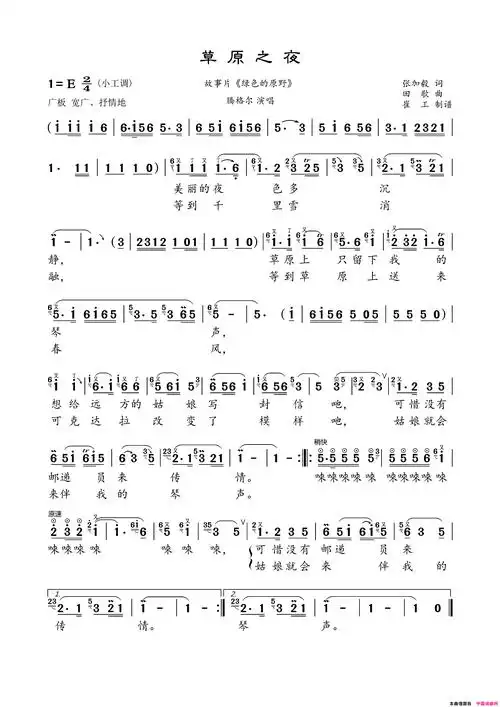 草原之夜简谱-降央卓玛演唱-落红制作曲谱