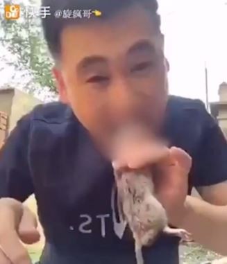 【恶心慎入】「旋疯哥」生吃死老鼠 咬头带血吞下肚