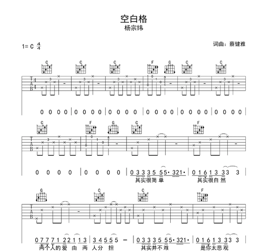 空白格 吉他谱 六线谱—杨宗纬