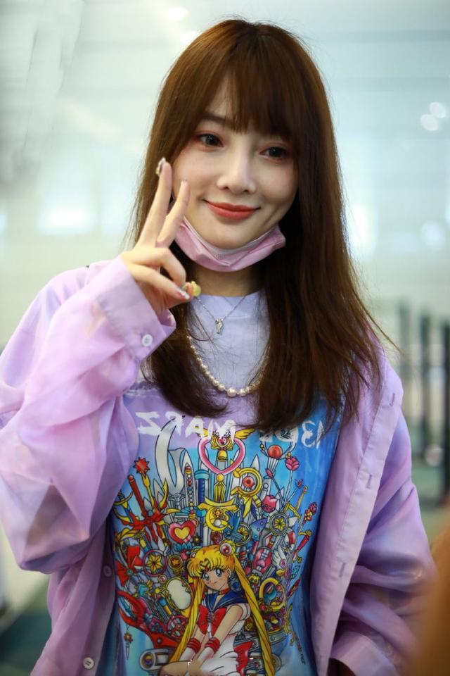 38岁李小璐近照,穿美少女印花t像少女_颜色_图案_紫色