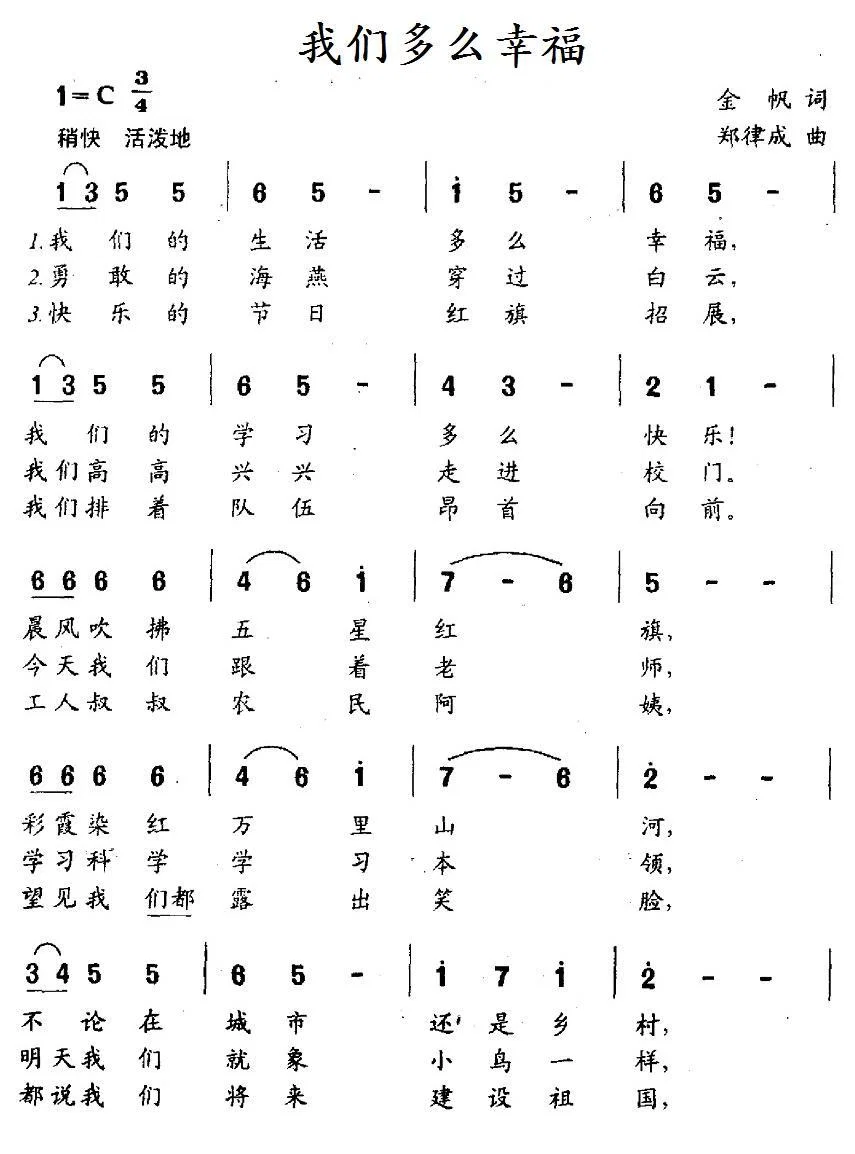 我们多么幸福(金帆词 郑律成曲)简谱-少儿曲谱-爱曲谱网