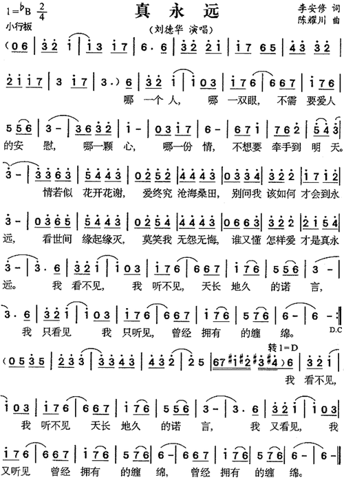 真永远简谱,刘德华演唱,李安修词,陈耀川曲
