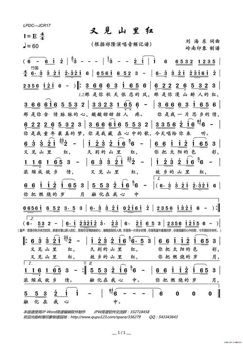 又见山里红简谱-祁隆演唱-岭南印象制作曲谱1