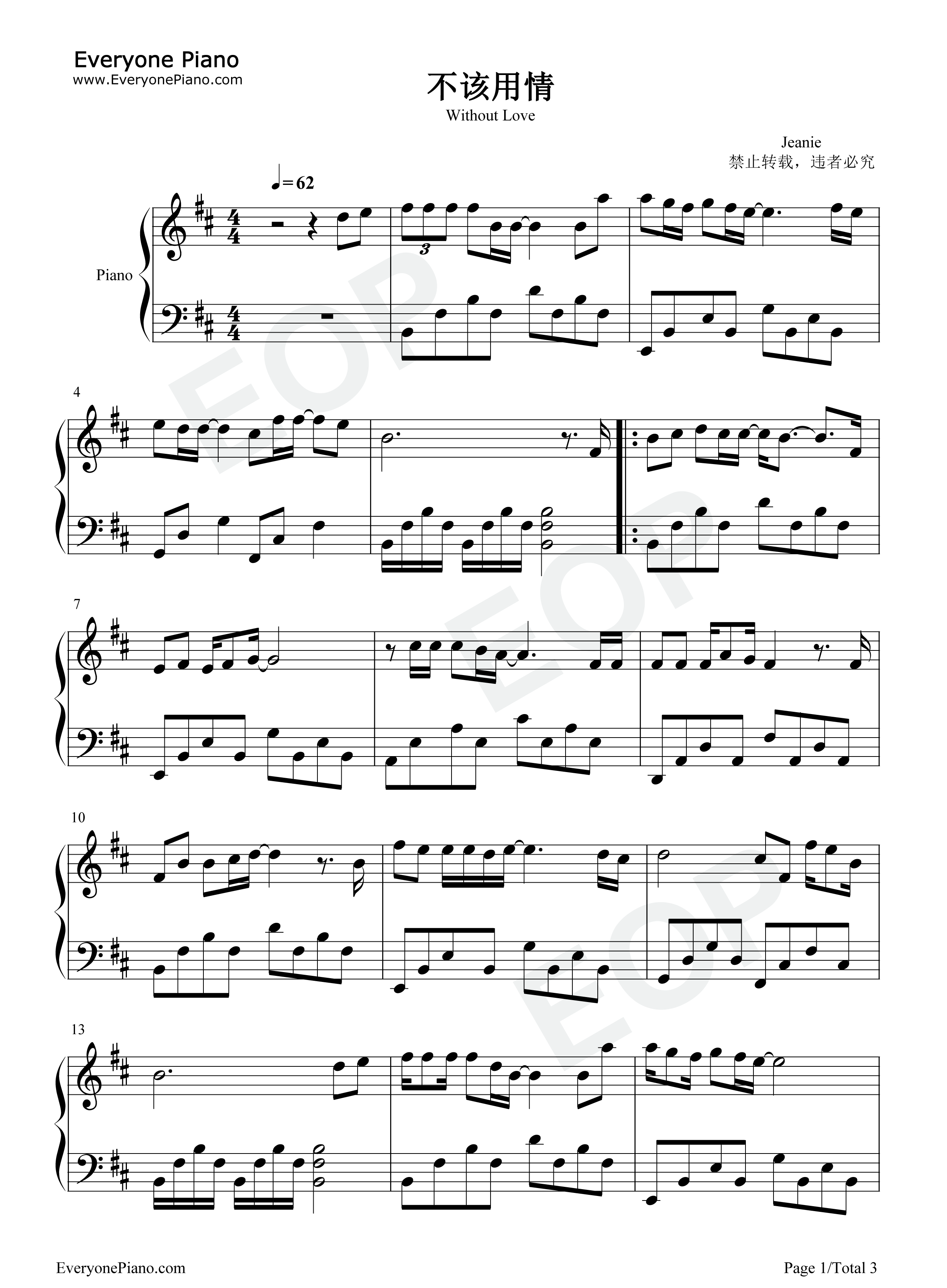 不该用情钢琴谱